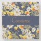 Pretty chamomile and poppies floral pattern on navy blue background with text band. Customise with name or other special message.
