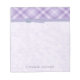Pretty purple check pattern and a soft floral joined with a simulated ribbon with a blue buckle. Personalise with your name or message in matching font lettering.