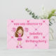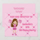 This adorable pink cheerleading birthday party invitation features a pretty brunette cheerleader girl in a cheer uniform holding pink pom poms. Personalise this cute children's party invite with your child's name in lovely pink and write your details on the back of this card.