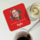 Pretty Chic Red Lucky In Love Irish Shamrock Photo Square Paper Coaster