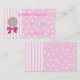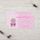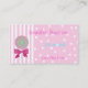 This playful pink calling card has a pink and white polka dot and striped background, with graphics of a pretty sucker, with a bow. Customise this pretty calling card / enclosure card by changing the texts colour, size and style is you want.