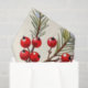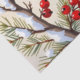 A beautiful Christmas tissue paper with an illustration of a red cardinal on a birdhouse surrounded by pine tree branch with red berries and snow.
