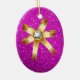 Beautiful Double-Sided Oval Christmas Ornament Featuring Pretty Christmas Present & Pink Faux Glitter Design - Gold Bow Design on the Back
