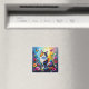 Pretty Colorful Impasto Cat and Flowers Magnet