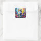 Pretty Colorful Impasto Cat and Flowers Square Sticker