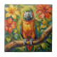 Pretty Colorful Impasto Parrot and Tropical Flower Tile