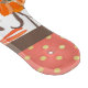Pretty and modern floral paddle style glass cutting board feature centre orange and coral coloured flower panel with coral and gold polka dot top and bottom borders.