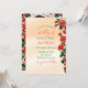 Gorgeous wedding invitation with coral and green accent. Pretty coral roses and green foliage adoen the front of the invitatin and the back has a mosaic broken tile illustration with a bride and groom.