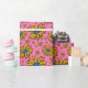 Whimsical daisies in yellow and blue on a hot pink background. A funky floral design in bright colours. Fun colourful paper that's perfect for wrapping gifts and craft projects.
