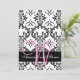 Pink monogram on black and white unique damask pattern, customisable Wedding Invitation (rectangular format). Pretty Damask Pink Monogram Wedding Invitation. Design by Elke Clarke© for Monogram Gallery. Customise with your monogram, names, wedding date and wedding invitation text. For more editing options use "customise it" to change text spacing and colours. Or contact luxuryweddinginvitations@gmail.com for help. Graphics licensed for use. No duplications permitted.