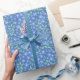 Pretty Ditsy Periwinkle Blue Green Floral Pattern Wrapping Paper