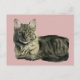 Pretty Domestic Medium Hair Kitty Cat Watercolor Postcard