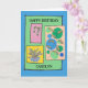 This card is great fun and good quality. I loved the humour inside and on the back. There is the opportunity to change the orientation of this card from landscape to portrait, which I did. It is relatively straightforward to amend the typeface to fit the new orientation. It was well packaged with no plastic. The printing on this card is excellent.