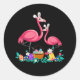 Pretty Easter Flamingo with Easter Basket Easter E Classic Round Sticker