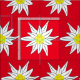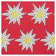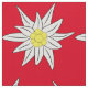 A red and white floral piece of fabric with a seamless edelweiss pattern . Ideal for crafting making pillows , your own face masks ,or anything you wish to .