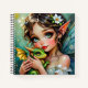 Fairy Tale themed checklist notebook. A pretty anime elven fairy holding her cute baby dragon. A beautiful fairy tale vibe in an enchanted setting ethereal art.