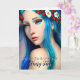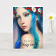 Sending some love your way friendship thinking of you card. Dream Big and Live Your Fairy Tale quote. Pretty enchanted fairy girl with blue hair and red and white flowers in her hair and blue eyes. Fantasy art ai art. generativecontent