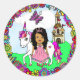 Pretty Ethnic Princess and Unicorn Castle Classic Round Sticker