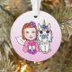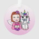 Pretty pink and purple, Red Haired Fairy & Rainbow Unicorn & Butterfly personalised Christmas ornament keepsake.