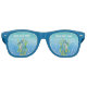 These retro party glasses have a pretty fantasy sea dragon or seahorse with a white stomach and is aqua blue holding green seaweed with its tail on a background of various blue shades. Customise your text with the template.