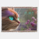 Pretty Fantasy Cat Flower *Monogram* Throw Blanket