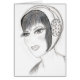 A new April 2011 addition to the popular ARTBYSONYA Deco Girls collection, this original sketch entitled PRETTY FLAPPER depicts a young flapper with trademark short dark hair and wearing a fancy cap hat, with a large swirled rose at the side.