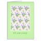 A very pretty 101st Birthday Card, with a pattern of pink Roses, creamy white Mock Orange and purple Lavender on a white background with a pale green border, from a handpainted watercolour design by Judy Adamson. You can personalise the inside message.