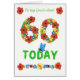 A pretty, floral 60th Birthday Card for a Great Aunt. The numbers are composed of flowers and a blue butterfly is perched on the letters. This design is from a handpainted paper collage by Judy Adamson and is also available as a Custom Front card. You can edit the inside text if you wish.