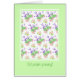 A very pretty 70th Birthday Card, with a pattern of pink Roses, creamy white Mock Orange and purple Lavender on a white background with a pale green border, from a handpainted watercolour design by Judy Adamson. You can personalise the inside message.