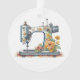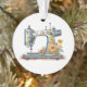 Pretty vintage antique sewing machine surrounded by coral flowers personalised Christmas ornament.