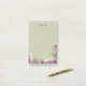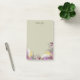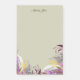 Beautiful flowers boarder the note pad post it note to represent trendy nature appearance in pretty colours. The name can be customised to change colour and font. There are different colours of flowers in styles in the same store representing multiple post-it-notes in a great way.