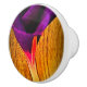 The beautiful, vibrant purple flower on this ceramic knob is called Morning Glory. The summer climbing plant grows wild and usually produces twin blossoms.