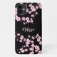 This phone case features pretty pink cherry blossoms on a black background. Customise it with your name. For girls and women who love flowers and floral Asian designs.
