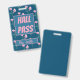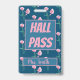 A simple ocean blue student hall pass with a pretty floral pattern . Personalise it with the teacher's name using the template . You can choose between metal clip or yarn . Ideal for middle school or high school .