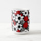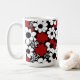 Red, black and white flowers whimsical tiled pattern coffee mug.