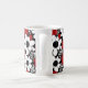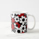 Red, black and white flowers whimsical tiled pattern coffee mug.