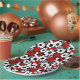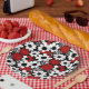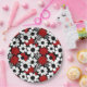 Red, black and white flowers whimsical tiled pattern birthday paper plates.