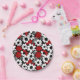 Red, black and white flowers whimsical tiled pattern birthday paper plates.