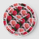 Pretty Floral Pink Red Roses Pattern Large Wall Clock