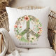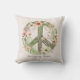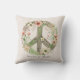 Pretty Floral Retro "Bloom in Peace" Peace Sign Cushion
