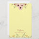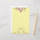 A pretty floral stationery, this product features lovely flowers on the top and the bottom. There is a place to insert your name in text in lovely pink flowers on a pale yellow background.