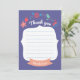 A purple thank you card with flowers and a panel for your name. Matches perfectly with our Unicorn with Flowers Invitation. (<a href='http://www.freepik.com/free-vector/unicorn-birthday-party-invitation_1070804.htm'>Designed by Freepik</a>). <br/><br/>The card is easy to customise with your wording, font, font colour, paper shape options and choice of six paper types.<br/><br/>Not exactly what you're looking for? All our products can be custom designed to meet your needs at no extra charge.<br/><br/>Simply contact us at askcottonlamb@gmail.com.<br/><br/>Coordinating products available: Just ask us!