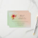 Wedding RSVP card with a pretty wildflower floral design with flowers in red and yellow, contrasted with pink and brown leaves and sprigs. Set on a mint green and light coral pink gradient background.