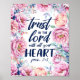 This beautiful poster print features a watercolor floral frame and stylish typography reading, "trust in the lord with all your heart."