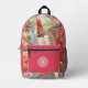This cute, stylish custom backpack features a painting called Florida Water by Murray and Lanman, which includes a pink cockatiel and tropical elements. A monogram text template is included - use it to personalise your backpack or remove it, if you'd prefer no monogram. The front pocket, sides, top, and bottom all have a matching bright pink background. Great unique design for girls for back-to-school!
