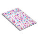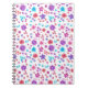 A pretty Spiral Notebook or Journal, with a pattern of flowers in purple, turquoise, pink and orange on a white background, from a handpainted paper collage by Judy Adamson. You can easily change the background colour, if you wish, by using the Edit button.