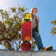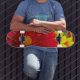 Pretty red and yellow flower is a colourful floral design for a girlie skateboard.