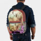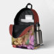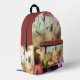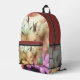 A backpack with an array of pretty flowers with dark red and black accents. Colour palette includes terracotta, red, sienna, brown, beige, ecru, taupe, purple, lilac, and greens. A very nature inspired and stylish item to add to your accessories.