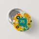 Yellow and turquoise whimsical folk art flowers buttons. Add initials in the personalised area.