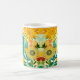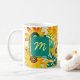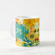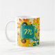 Yellow and turquoise whimsical folk art flowers coffee cup. Add initials in the personalised area.
